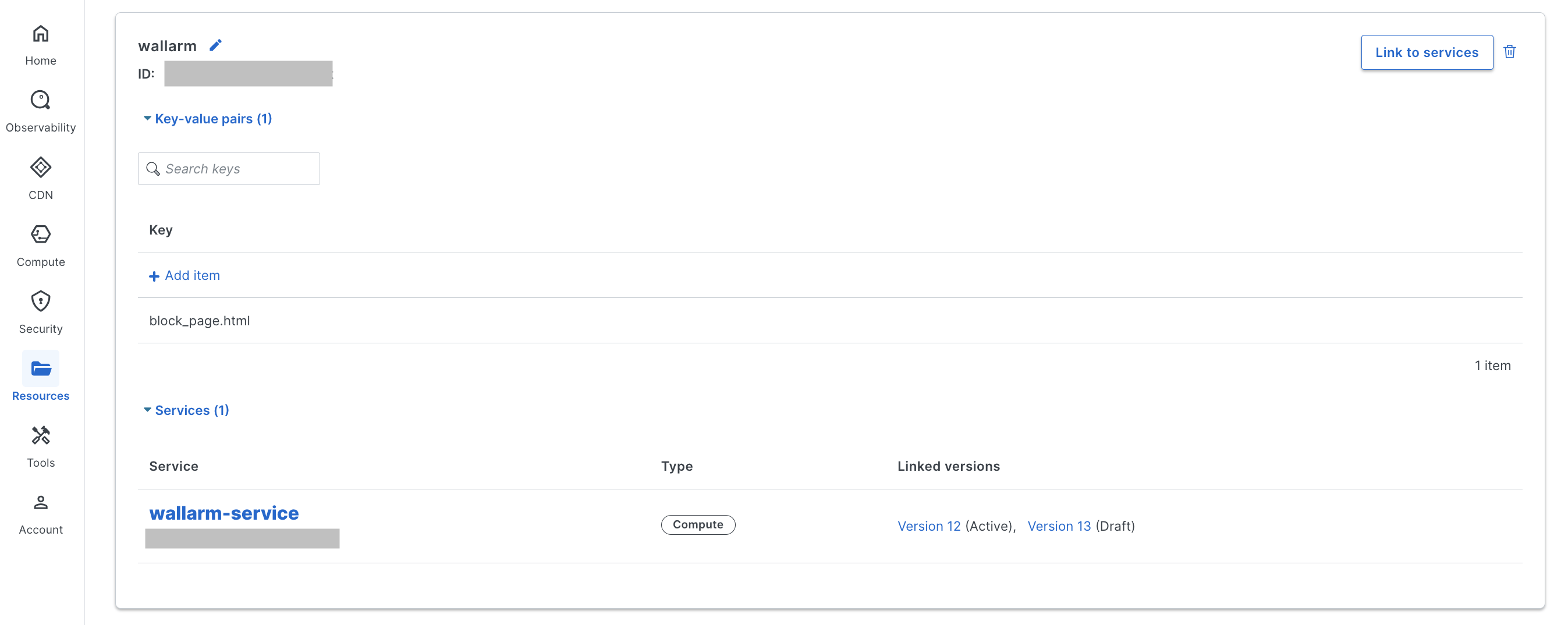 Go to Fastly UI → Compute → Compute services → Wallarm service → Edit configuration.